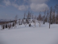 中愛別山(2012.3.16) 上川郡愛別町旭山 標高:818m 距離:3.4km A:林道入り口 B:駐車:除雪終了点(上川郡愛別町中央) C:林道から林内へ E:傾斜が強い F:景色が雄大