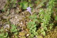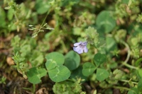 特 徴:茎は横に這うように伸びる。葉は丸形でやや小型、縁にゆるい鋸歯がある。花は茎が立ち上がる前に開花し、花の花冠下唇には斑がない。