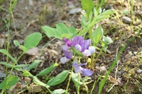 名前の由来:浜辺に生え、エンドウマメに似ていることから。 特徴:茎は地を這い、先は立ち上がる。葉は羽状複葉で茎先は巻きひげとなる。花は蝶形、色は赤紫色。