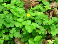 特 徴:葉は長い柄があり3出複葉、小葉は3~5の切込みがあり、両面には毛が生え鋸歯がある。花は茎先に1~3個つき、花弁は5枚、色は黄色。