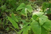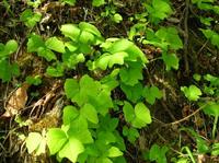 名前の由来:ナンブソウは南部草(東北地方)で産地に由来する。 名前の由来:葉は根元から出た長い柄の先きに、扇形の無柄の3小葉がつく。花は茎頂に穂状つく。花は白。