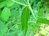 特 徴 葉は長い披針形、柄はなく、不規則な鋸歯がある。茎は上部でよく分枝しする。枝先に紅紫色の頭花を上向きにつける。総苞は鐘で、総苞片は反り返らない。