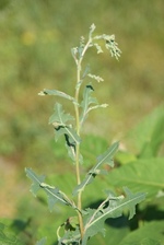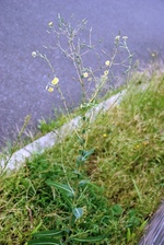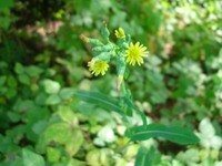 特 徴 茎はよく分枝する。葉は互生し、長楕円形で、柄はなく、基部は耳状。縁に細かい鋸歯がある。葉の裏面の中央脈上に刺がある。枝先に黄色の舌状花の頭花をまばらにつける。