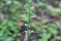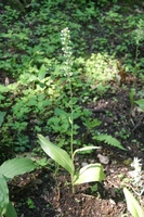 名前の由来:チドリは花を千鳥にたとえて、エゾは北海道に自生していることら 特 長:根元に長楕円形の大きな葉が向かい合うようにつく。花は茎の上部に多数つく。色はやや緑を帯びた白色。側萼片は横に開き、唇弁は下に垂れ下がる。距は長い。