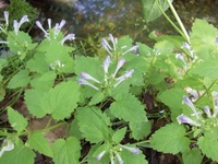 特 徴 茎は細く四角形、少し分枝し節に白い毛がある。葉は3角形に近い卵形で、ふちには粗い鋸歯がある。花は茎の先に短い穂状にまばらに着く。 手招きのような形をしている。