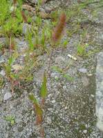 名前の由来:エノコログサは花穂が犬の尾に似ていることから。ムラサキは花穂が紫色になることから。 特 徴:茎は基部で分枝して直立する。葉は先が尖った長披針形。花序は円柱状で小穂の剛毛は紫褐色。