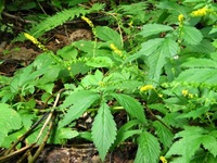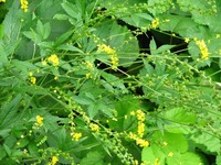 特 徴 葉は羽状複葉、小葉は5~7枚、あらい鋸歯があり、先は尖る。花は黄色で小さく細く、花穂に多数つく。花びらは5枚で先は丸い。