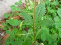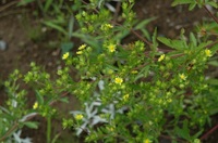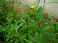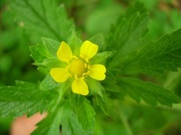特 徴 茎全体に毛がある。葉は小葉3枚、まれに5枚、小葉は長楕円形で先が尖り、切れ込みがある。托葉は基部だけ柄に合着する。枝先に黄色の花を多数つける。花弁、萼片は5枚。萼片は先がとがり、花弁より長い。