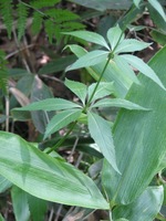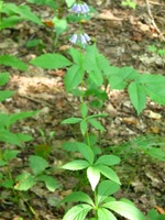 名前の由来 花が釣鐘状で、根が朝鮮人参に似ていることから 特 徴 葉は3~5枚輪生し、楕円形から披針形、縁に鋸歯がある。花は淡紫色の下を向いた鐘形で、数段に分かれて輪生する.。