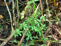 特 徴 茎は4稜で下向きの刺があり、枝分かれしながらつる状に伸びる。葉は4~6個輪生し、倒披針形。花は枝先や葉腋から細い花序を出し、黄緑色の花をつける。